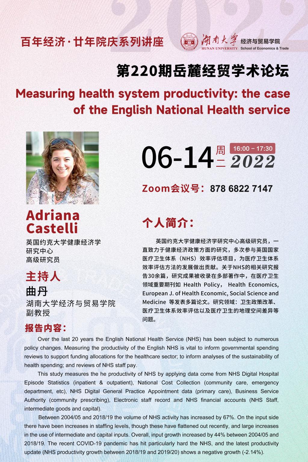 Adriana Castelli:Measuring health system productivity: the case of the English National Health service