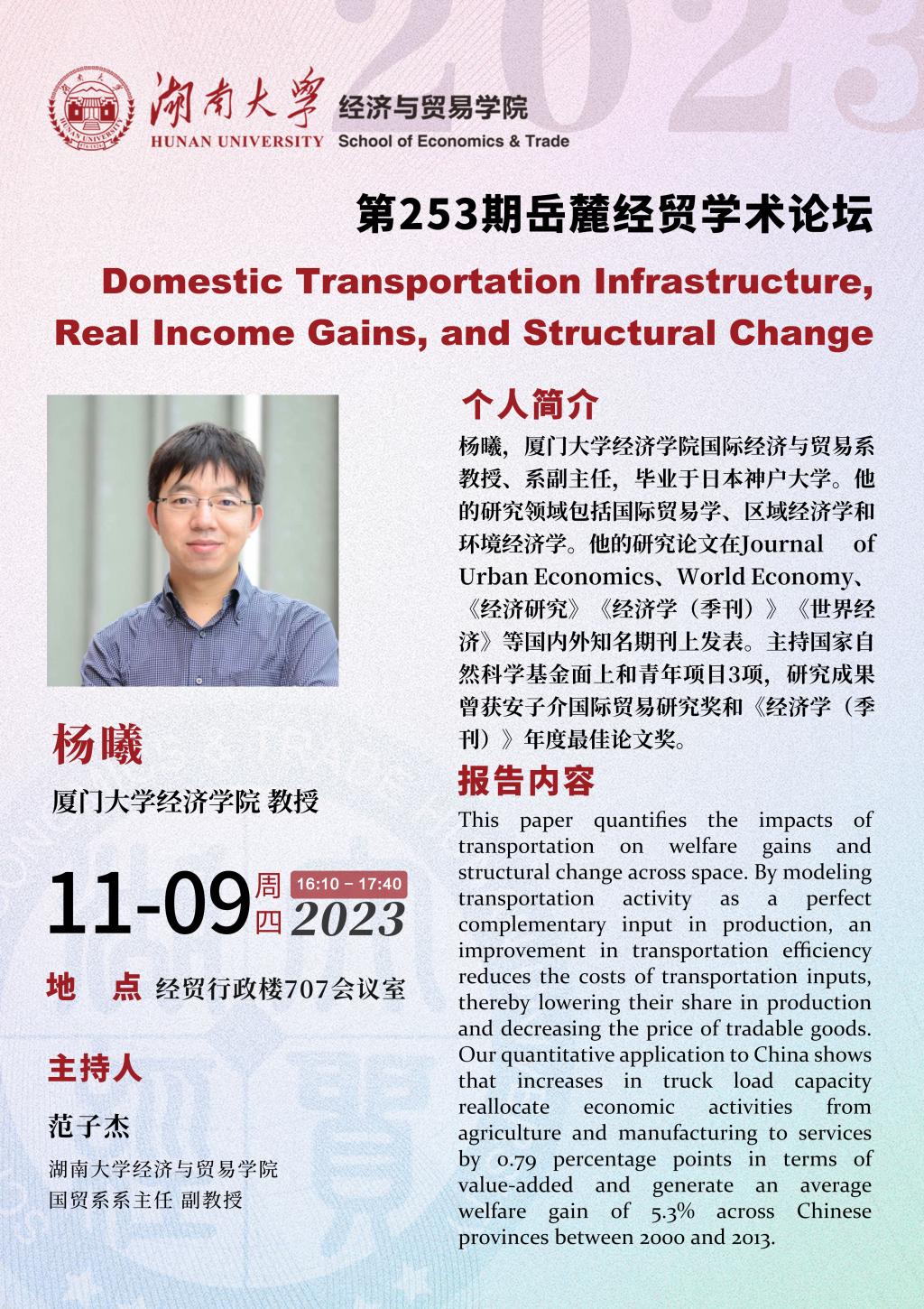 杨曦:Domestic Transportation Infrastructure, Real Income Gains, and Structural Change