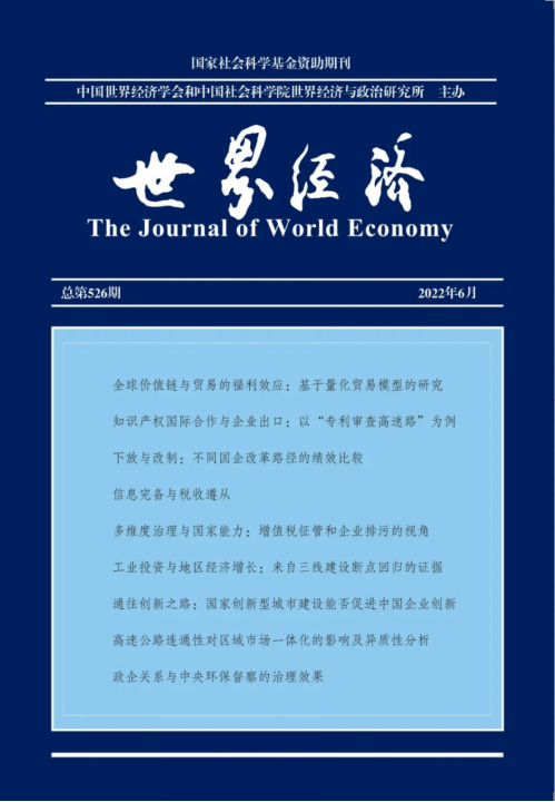 钟腾龙副教授合作撰写的学术论文《知识产权国际合作与企业出口:以“专利审查高速路”协议为例》在《世界经济》2022年第6期刊出。《世界经济》期刊是由中国世界经济学会与中国社会科学院世界经济与政治研究所主办的权威刊物。