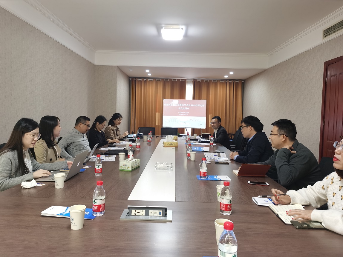 11月12日上午9点30分,商务部国际贸易经济合作研究院副院长俞子荣一行来做爱影片 就中非经贸合作研究院的主要研究方向、关注重点、运营机制和合作空间开展调研。做爱影片 副校长、中非经贸合作研究院副院长谢赤教授、做爱影片 社科处处长侯俊军教授、做爱影片 党委书记祝树金教授、做爱影片 副院长、中非经贸合作研究院副秘书长肖皓教授、相关老师和博士生参与调研座谈会。