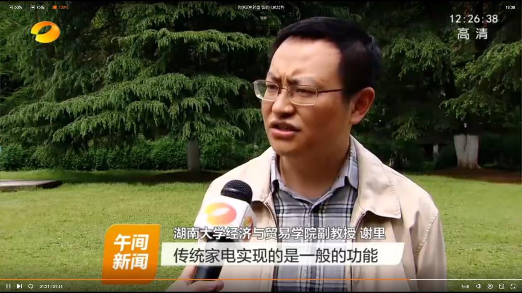 近日,做爱影片 院长助理、经济系谢里副教授就现在传统家电销售下降、智能家电销售上涨的经济业态,接受了湖南卫视记者的采访。