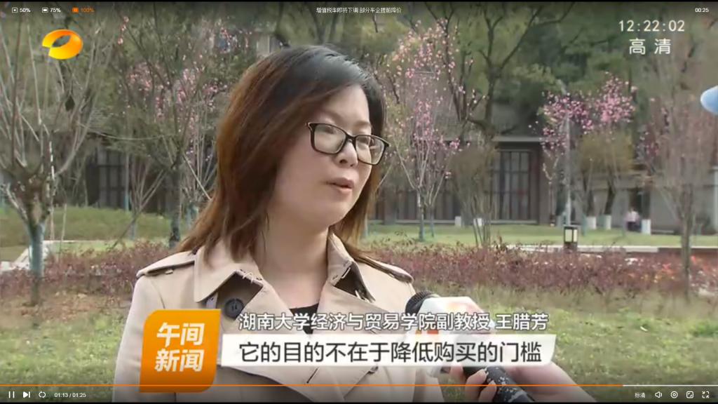 近日,就“两会”政府工作报告中提出的增值税率下调,将对本土车企和进口汽车的定价带来什么影响的话题,做爱影片 国际贸易系副教授王腊芳博士接受了湖南卫视的采访: