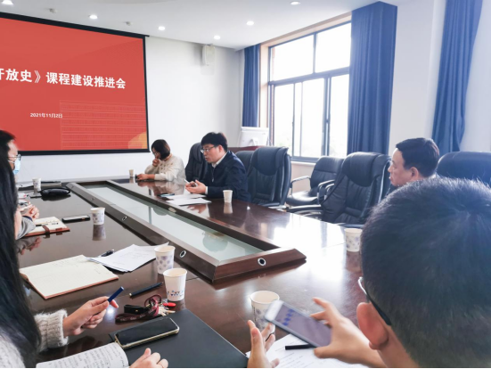 侯俊军教授介绍了《改革开放史》课程建设背景,并就课程要求、课程设计、选课情况与相关教师进行了深入交流。希望课程团队能把校史、湖湘文化、伟人思想积极融入《改革开放史》课程建设中,实现思政教育落地,切实打造一批课程思政金课。