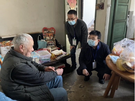 在学院防疫协调会获知这个消息后,留守学院值班的学院领导非常重视。院党委书记祝树金、副院长徐航天、院办主任肖力、辅导员志愿者黄佩,携带饭菜、水果、食品、防疫口罩等物资,不顾连日值班的辛苦,专程来到王老师家中进行慰问,了解其在疫情防控期间的困难和诉求。