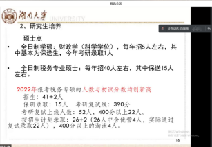 唐明副教授、肖海翔副教授和余锦亮副教授就财政学专业从专业课程、职业优势和学科竞赛等方面为同学们作了详细介绍。湖大财政学专业作为省级一流建设专业,注重公共经济管理理论与税收征管实务及财务会计实务操作相结合,立足培养“应用型、融通性、开放式”的高级税务管理专业人才,就业方向聚焦财税系统。财政学专业有雄厚的师资队伍,已培养出一批财经领域的优秀人才。系党支部书记唐明副教授提到:“财政学学习的脉络和思维方式更具有政府特色,借助于财税相关的学科竞赛渠道,同学们能够获得创新能力的提升。”