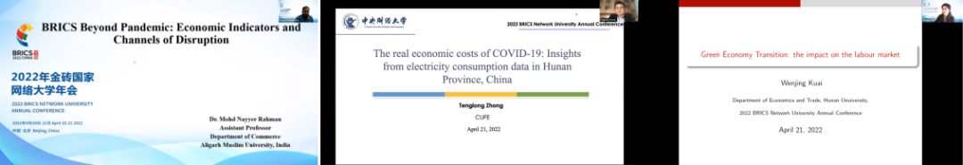 共11位学者就金砖五国的贸易、投资、劳动力流动和疫情防控等问题进行了深入交流,来自全球各地的100余位学者、学生参与了线上研讨。