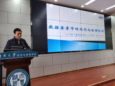 刘征驰教授作题为《数据要素市场运行与治理机制—对“建设全国统一大市场”的一些思考》的报告。刘征驰教授结合自身的专业研究领域,分享了以下几个值得深入研究的学术问题。第一,站在经济学视角,如何如何解构数据要素市场和理解数据要素市场的“基础制度”;第二,无形的“数据要素”是否存在无形的地方保护和市场分割,作为一种新型生产要素,数据要素市场经济循环的关键堵点在何处;第三,由于信息不对称、强外部性、低边际成本等特征,数据要素交易是否存在市场失灵,在数据要素市场中,如何更好发挥政府作用,数据要素市场发展如何推动经济增长;第四,从“知识”到“数据”,如何界定数据要素产权并完善经济产权的制度体系;第五,如何界定“数据、算法、技术”导致的平台垄断,如何解决平台企业数据垄断问题;第六,数据要素流通是否需要基础设施支撑,与国家物流枢纽网络、国家综合立体交通网类似,如何构建国家数据流通网络;第七,哪些数据要素属于公共资源范畴,如何运营这些资源并构建数据要素流通的综合服务体系;第八,平台企业应在数据要素市场治理中扮演什么角色,如何构建数据要素市场的多元治理模式。