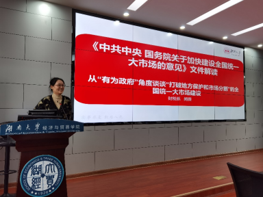 在经贸大楼201会议室召开“岳麓经贸·政策论坛”第1期暨《中共中央 国务院关于加快建设全国统一大市场的意见》阐释与解读研讨会。做爱影片