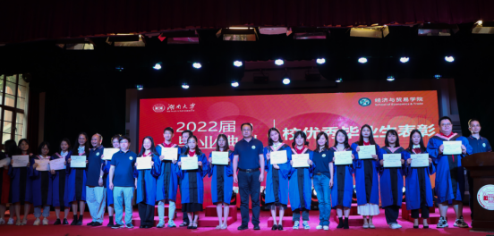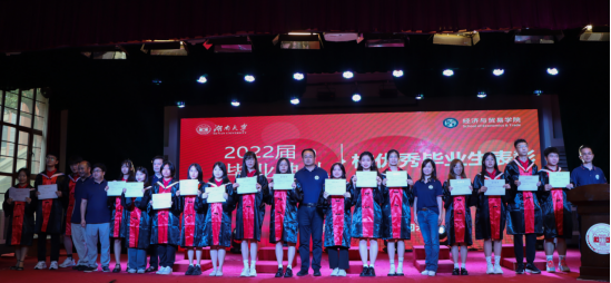 硕士毕业生代表李紫纯、本科毕业生代表徐政杰分别分享了在校园的成长历程,表达了对学校学院的感恩与祝福。教师代表为全体优秀毕业生颁发了证书。