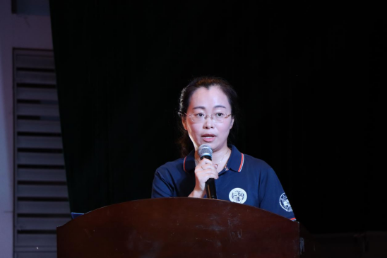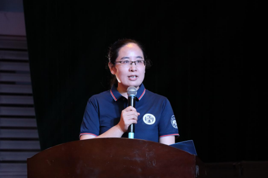 教师代表刘懿发言,希望同学们既要学会珍惜当下,乐观前行,又要学会保持快乐,适度克制。