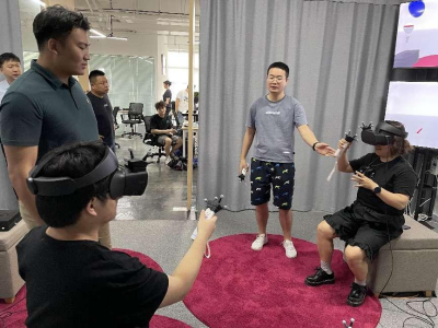 随后,调研组参观了公司的VR(虚拟现实)、AR(增强现实)、MR(混合现实)技术展示和动作捕捉技术展示,并体验了Alice大空间VR虚拟现实多人交互系统。