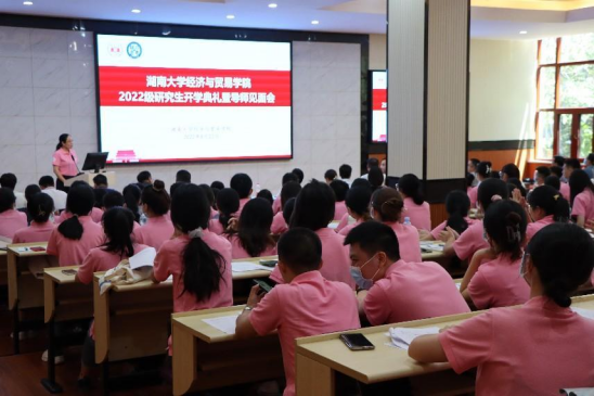 2022级研究生开学典礼暨导师见面会在食堂2楼报告厅举行。学院领导班子、学院教师代表、教辅人员50余人及2022级全体研究生参加会议。开学典礼由党委副书记李曼主持。
