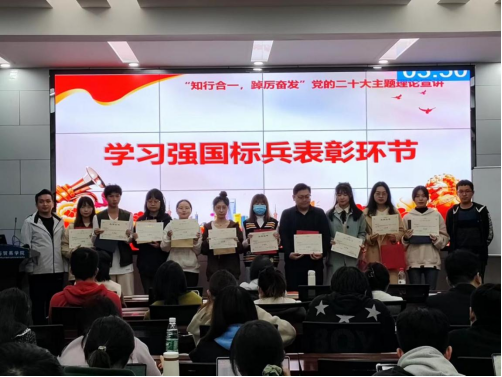 为引导广大青年学生深入学习贯彻党的二十大精神,激励广大青年提升理论水平,勇担时代重任,团结奋进新征程。11月22日晚,学院在行政楼201开展“知行合一,踔厉奋发”党的二十大主题理论宣讲比赛暨第17期发展对象培训班结业仪式,学院党委书记祝树金、党委副书记李曼、全体辅导员及第17期发展对象培训班学员参加活动。学工办主任蔡婕萍、学生刘汉轩主持。