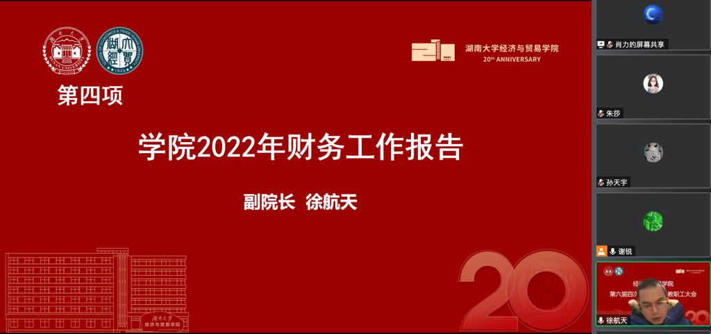 六届四次工会会员、教职工大会召开。会议以在线形式举行,全体工会会员、教职员工参加,学院部门工会主席谢锐主持会议。