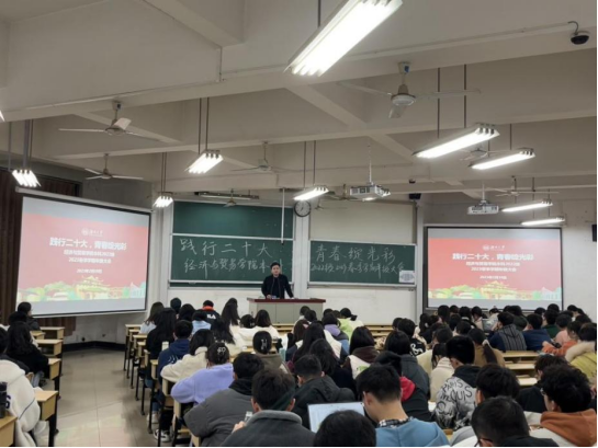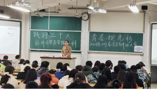 组织开展2022级 “践行二十大,青春绽光彩”主题年级大会。学院党委副书记李曼老师,本科2022级全体学生参加。会议由2022级辅导员艾克帕尔老师主持。