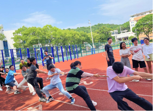 于财院校区操场开展“师生同心,凝心聚力”拔河比赛。