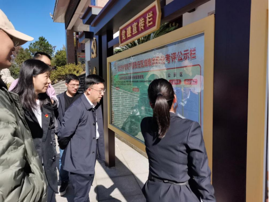 师生党员在油溪桥村参观党建引领产业发展模式,学习油溪桥村编制的活动剪影书籍,体验油溪桥村积分制运行流程,感受数智化乡村振兴的魅力。