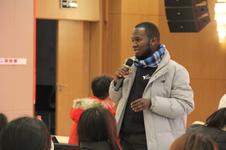 思璘华晟公司座谈会上肯尼亚工商联驻中国唯一代表Fredrick介绍自己的工作