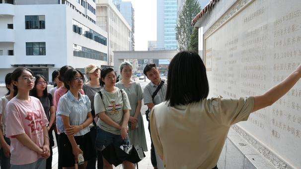 湖南省人大的工作人员首先带领同学们参观了镌刻着宪法条文的“宪法墙”,并重点介绍了与财政专业联系紧密的宪法条款,让同学们进一步加深了对宪法与预算审查批准监督的认识。