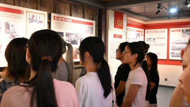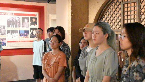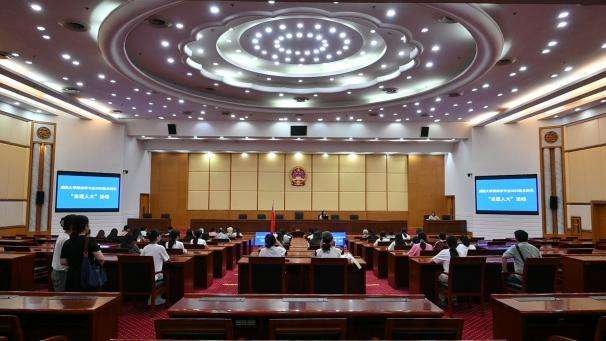 在省人大历史陈列室,同学们跟随工作人员的脚步,参观了关于人民代表大会制度的历史回溯、前行足迹、使命担当、自身建设四大板块,回顾了人民代表大会制度的发展历程和在湖南的生动实践,并了解了人大工作的具体情况。