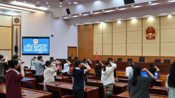 最后,同学们在工作人员的带领下高举右拳,进行庄严的宪法宣誓。“我宣誓:忠于中华人民共和国宪法,维护宪法权威……”