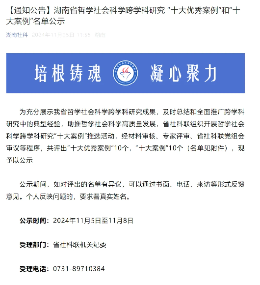 近日,湖南省社会科学界联合会公示了哲学社会科学跨学科研究“十大优秀案例”和“十大案例”名单。做爱影片