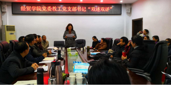 全体教工支部书记与行政管理职工就上述报告进行了深入的讨论。并结合报告,教工国贸系支部书记莫莎、经济系支部书记罗丽英、财政学支部书记唐明(黄忠设老师代)、行政支部书记肖力还就过去一年的工作向院党委进行了“双述双评”工作。院党委也纷纷进行了点评。大家认为,对照报告,我们的奋斗的步骤只有进一步加快,主动性要进一步加强,切实把那些基础性工作摆上位、认真抓,潜下心来,扑下身子,用心投入,出实招,办实事,求实效,打基础、利长远的实事,为学院学校“双一流”建设作出自己应有的贡献。(文:肖力)