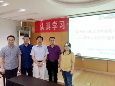 ,在财院校区行政楼401作了题为《税务硕士如何选题——税务专家指点迷津》的讲座。经贸学院教师代表唐明副教授副教授副教授副教授及财院校区税务专业研究生参加了本次讲座。