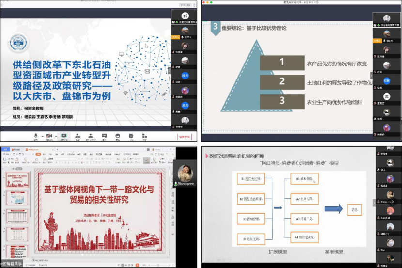 经过激烈答辩,评审组评议,杨森淼负责项目《供给侧改革下东北石油型资源城市产业转型升级路径及政策研究——以大庆市、盘锦市为例》获评优秀。本次云结项为学院SIT项目组织运行提供了新平台,有助于学院积极探索提升学生科研能力新模式。