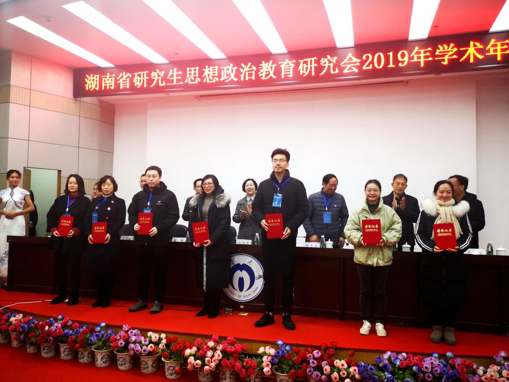 2019年12月28日至29日,湖南省研究生思想政治教育研究会2019年学术年会举行。我校荣获“2019年湖南省研究生思想政治教育研究与实践先进集体”,做爱影片 张文静老师荣获“2019年度湖南省研究生思想政治教育研究与实践先进个人”。