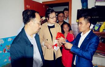 在祝树金、谢树玉同志的带领下,国贸支部和行政支部的党员与同学们一起,拧起慰问品,分头深入30余户脑瘫儿童家庭,现场与脑瘫儿童互动交流,与家长沟通目前遇到的困难,帮助家庭做一些力所能及的事务。行政支部书记肖力老师在得知慰问的家庭的特殊困难后,又自己出资向家长追加了慰问金,鼓励家长坚定信心,积极治疗,使孩子早日得到康复。党员们的义举得到了志愿者组织的好评,为国贸和行政支部分别授予“爱心单位”的牌匾以示感谢。