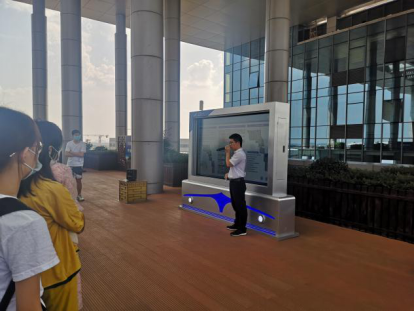 随后,同学们来到四楼观景平台观看长沙黄花机场综合保税区宣传片。宣传片结束后园区主任发表讲话,详细讲解了综保区的基本情况和贸易流程。讲话结束后同学们踊跃提问,对跨境贸易行业的情况及相关管理制度等问题进行咨询,主任耐心解答疑惑,同学们认真聆听,氛围轻松活跃,同学们收获颇丰。