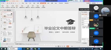 对2016级233名毕业生的毕业论文分为13个小组,采取线上答辩,交互审查等多种形式毕业论文中期检查。例如,4月15日下午,19名本科生正在线上进行毕业论文中期检查的线上云答辩,经贸院院长许和连教授等4位答辩老师检查了毕业论文的进度,对提交的论文初稿提出了很多的修改意见,对同学们在论文撰写过程中遇到的困难提出了解决方案。