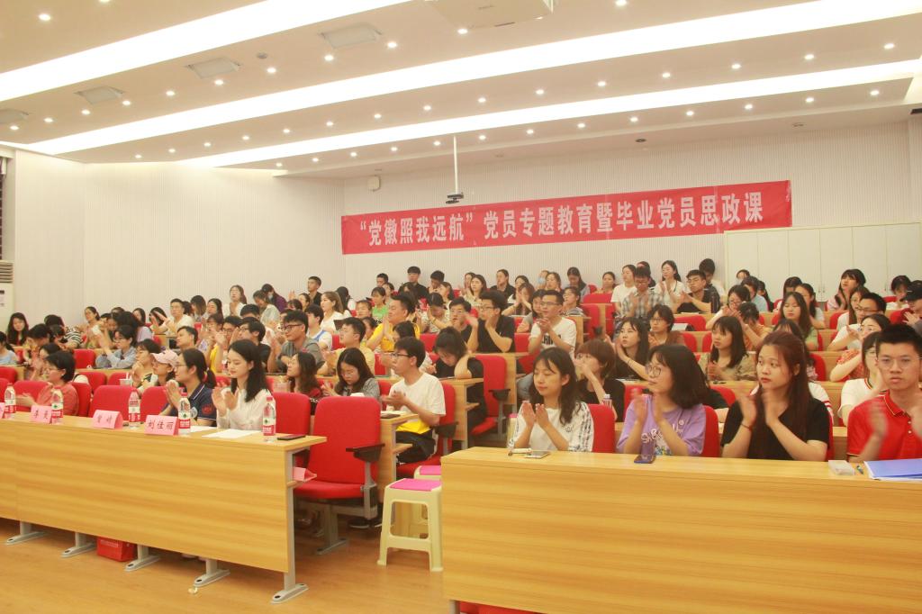 “党徽照我远航”之毕业生党员专题教育暨新发展党员入党宣誓在二教101顺利开展。本次会议由学院党委副书记李曼老师主持,全体毕业生党员、新发展党员和全体辅导员参加。
