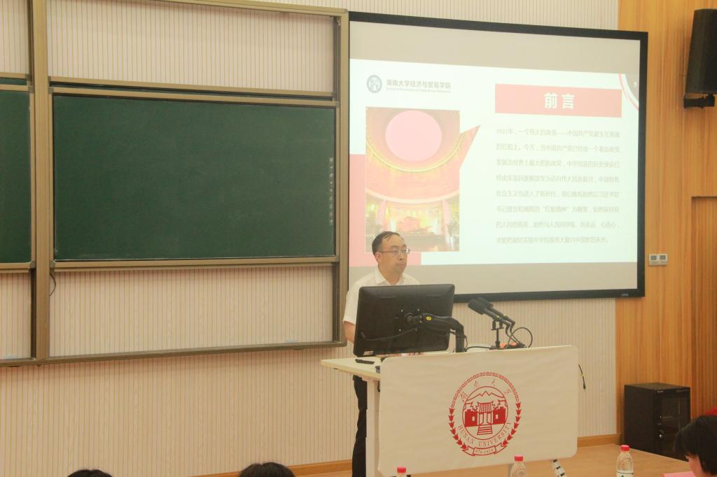 祝树金老师首先介绍了红船精神产生的时代背景、深刻内涵和重要意义。红船精神是思想武器、精神支柱和道德力量;是开天辟地、敢为人先的首创精神,是坚定理想、百折不挠的奋斗精神,是立党为公、忠诚为民的奉献精神,它反映的是中国共产党的建党精神,反映的是我们党内在的文化标签,反映的是我们党内最核心的价值要求。祝书记希望全体党员要在工作和生活中弘扬“红船精神”,要志存高远,树立崇高的理想信念;要勇于创新,把论文写在祖国大地上;要矢志艰苦奋斗,谱写新时代的青春之歌;要有奉献精神,树立新时代青年责任担当。引导毕业生立鸿鹄志、怀报国心、做奋斗者。