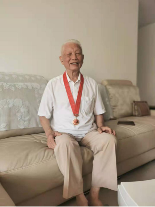教工退休支部书记王世昌、院办汪新华、教工退休支部委员文晓梅代表学院及学院退休支部一同上门为退休老党员送上“光荣在党50年”纪念章,对老党员们长期以来为党的事业发展所付出的心血、作出的贡献表示衷心的感谢。