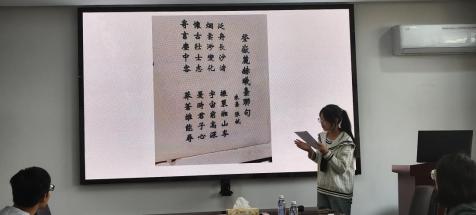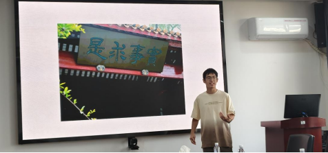 同学们通过前期学习,纷纷选择了岳麓书院的各景点进行阐述。阿依托拉介绍了书院的历史文化背景,倡导同学们牢记习近平总书记寄语,争做新时代青年。舒时雨从书院入口处的牌匾、对联说起,穿插不少有趣的故事,令人印象深刻,他提出,书院的一草一木都是中华优秀传统文化的瑰宝,我们应当要有文化自信。叶子豪重点讲解了岳麓书院的讲堂,他详细介绍了“朱张会讲”的故事起源和过程,提出书院是教育的传承,也是解放思想的传承,我们应当在大学里充分展示自己的思想,提升素养。陈雨熙向大家介绍了岳麓书院的赫曦台的景点,从三首诗出发,介绍了书院的历史文化,阐述了革命时期的书院文人故事。