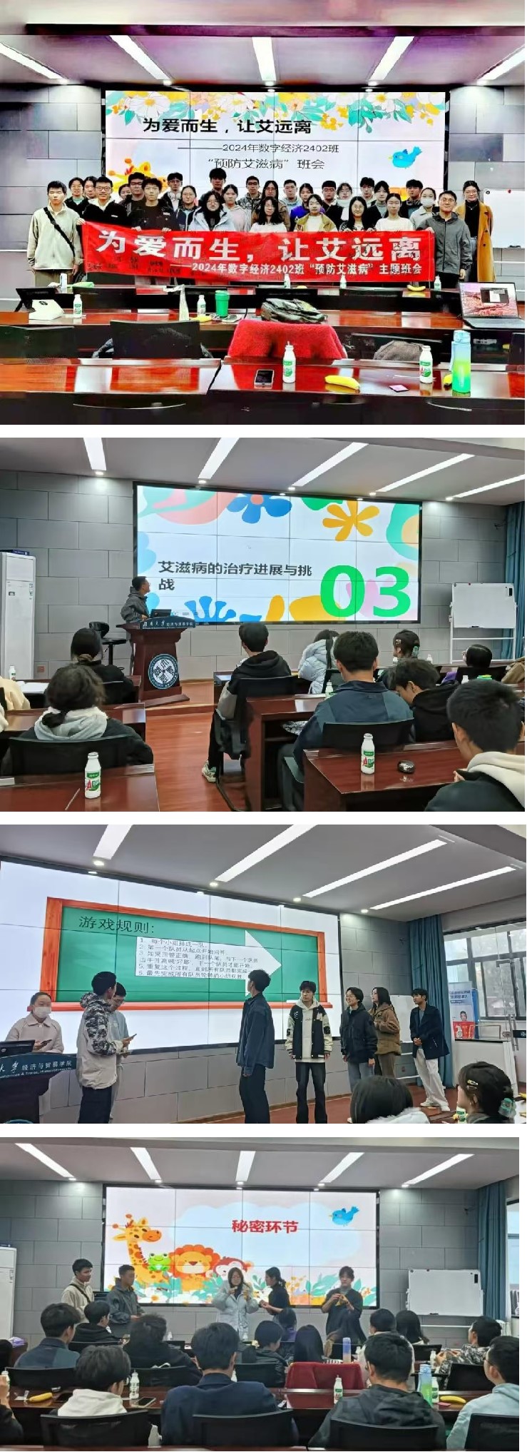 在生命的长河中,艾滋病是一朵令人揪心的乌云,它威胁着人类的健康和尊严。为了驱散这片阴霾,让青春之花在健康的阳光下绽放,同时提高同学们对艾滋病的认知水平,增强自我保护意识,营造一个健康、和谐、关爱的校园环境,数字经济2402班于2024年11月20日下午开展了一场生动有趣且意义深远的艾滋病主题班会,接下来我们将带大家一起走入本次活动。