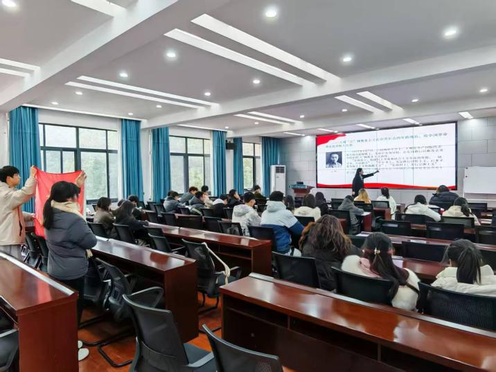 经贸院行政楼201向经济学类2401班开展了遵义会议精神宣讲。“艰难困苦,玉汝于成 。”宣讲团结合史实,详述遵义会议如何力挽狂澜,让学生真切感受到先辈们在困境中坚守、于挫折中奋进的精神力量,激励大家传承红色基因,勇担时代重任。