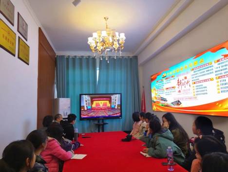 党委副书记谢树玉老师,2018级辅导员黄佩老师以及学院主要学生干部在行政楼601会议室,与此同时,学院行政支部成员在行政楼617观看纪念改革开放四十周年大会现场直播。