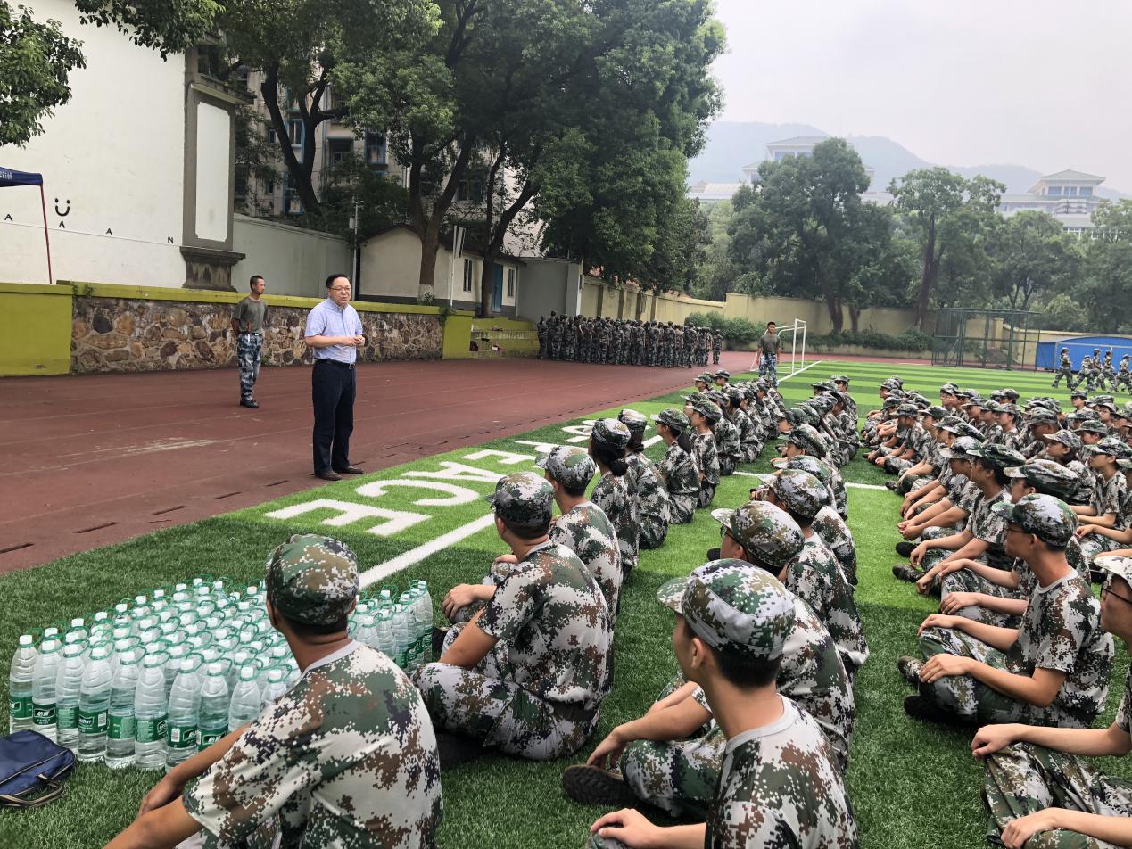 许院长代表全院老师欢迎2019级新生们加入经贸院这个温暖的大家庭,他教导同学们要感谢教官们的辛勤付出,学习教官们的思想与毅力,认真训练,磨砺意志,在接下来的大阅兵中展现出经贸人的风采,为经贸院争光!作为新生们的“开学第一课”,军训给予同学们的不仅是风吹日晒、眼泪汗水,同时还有坚韧不拔的精神,坚持不懈的毅力,因此,许院长向同学们建议:将军训中学习、培养的精神与毅力投入到未来的学习生活中去,成为更优秀的自己。