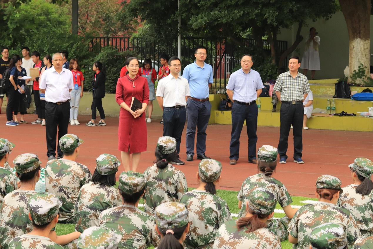 院长许连和教授、院党委书记郭平教授、副院长曹二保教授、副院长肖皓教授、院党委副书记谢树玉老师、学工办主任李曼老师到军训场上,向军训中的同学们慰问、鼓励。
