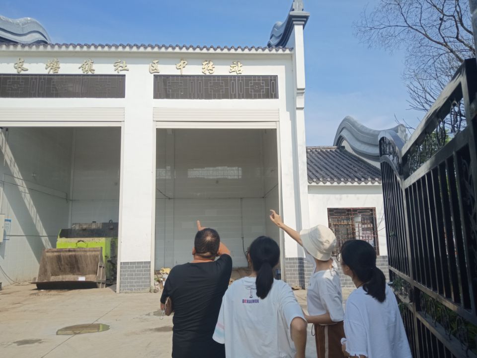 第一站,团队成员们来到了长塘镇社区垃圾中转站进行采访调研。工作人员介绍到,长塘镇以往垃圾未经分类便在水泥墙所制成的垃圾箱中进行焚烧,不仅造成大气污染,且未进行处理的有害垃圾对土壤危害极大。改革后,工作人员每日收集每户门前垃圾桶中的垃圾统一送至中转站,将可回收垃圾分离出后,再送至临湘市垃圾处理站,将有害垃圾分离出并进行最后的垃圾填埋处理,这种处理方式更系统、更环保、更经济。