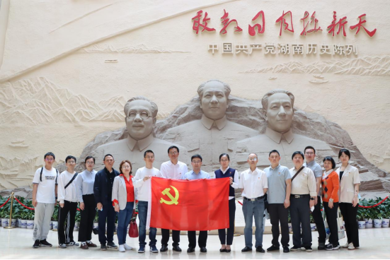 随后参会人员前往湖南省党史陈列馆进行实地研学,跟随讲解员聆听了党史陈列馆中藏品的背景故事,深入了解了中国共产党在湖南省的发展脉络,看到了在党的领导下湖南人民的奋斗历程和取得的辉煌成就,并在“潇湘魂”主题雕塑前重温了入党誓词,牢记党员的初心使命,感受新时代党员的责任和担当。