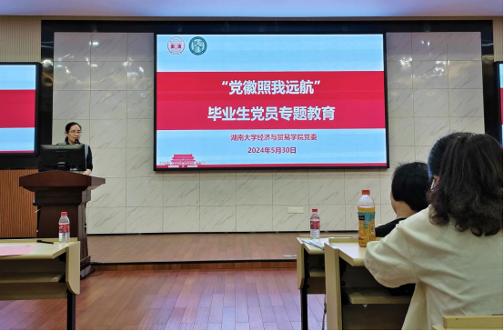 优秀博士毕业生党员代表唐斌就“不忘初心、脚踏实地,做新时代经世致用人才”主题发言,结合自己在中非经贸合作研究院的科研经历,重点从党建引领、学术研究和社会实践三个层面进行分享。表示作为新时代的湖大学子,将牢记总书记嘱托,把个人的理想、追求融入党和国家事业之中。时时刻刻将党纪牢记心中,不忘初心,脚踏实地,争做新时代经世致用人才。