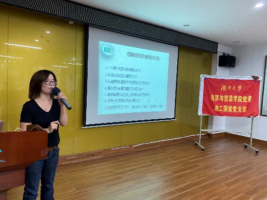 重要讲话精神暨课程思政教研会议。这也是为推动国贸党支部建设和教学科研活动紧密结合举行的一次学习活动。经贸学院党委书记祝树金教授,党委委员许和连、曹二保、肖皓教授参加了会议。