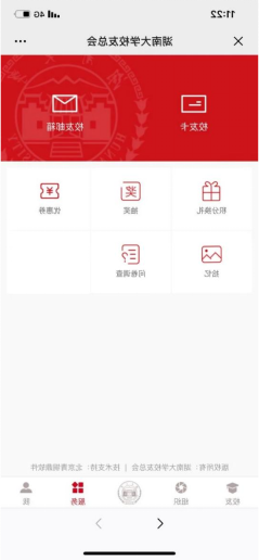 在服务页面,点击【校友卡】按要求上传资料,进行申领。
