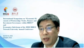 Eleven scholars from Tshwane University of Technology, Federal University of Rio de Janeiro, Southern Federal University, Aligarh Muslim University, MGIMO University, World Trade Institute, Durban University of Technology, University of Campinas, Central University of Finance and Economics, and Hunan University, had in-depth exchanges of views on trade, investment, labor mobility and epidemic prevention within BRICS. More than 100 academics from all over the world participated in the online discussion.