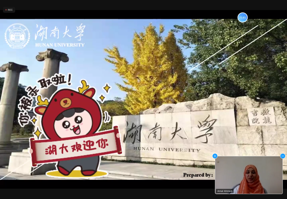 After that, Amal, shared her experience in her studies and research in China from various aspects including campus life, school system, cultural and language adaptation, course learning, etc. In the final Q&A session, students had a free exchange on school system use, tutor selection, scholarships and other issues.